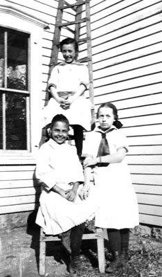 Mary Heath Ochiltree, at lower left, with her friends, Margaret Russell, at top, and Mary Johansen, at right, Avoca, Iowa, Fall 1917. Margaret still lives in Avoca. She and Mary Heath were life-long friends. Photographer unknown. |