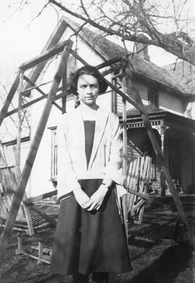 Margaret Ochiltree at Aunt Alice & Uncle Franks farm near Oakland, Iowa, south of Avoca, 3 December 1922. Margaret and Mary were frequent visotors here. Alice was Martys older sister and the last of the Randall siblings born in Virginia before the family moved to Iowa in 1859. Photographer unknown. |