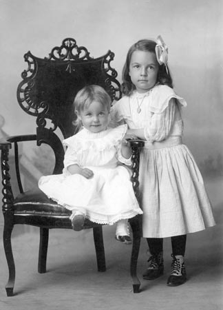 Mary Heath Ochiltree, on the left, with her sister, Margaret Ochiltree, Avoca, Iowa, 1907. This is a studio portrait but the photographer is unknown. |