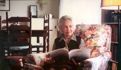 Mary Heath Sweet in her living room at Quinton Arms, Arlington, VA, 26 November 1977. As in 1955, everything in the photo except the curtains and a few of the books is still with us.