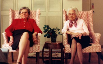 Mary Heath and her niece, Polly Sweet Wagner, in her Arlington apartment in December 1990, a year and a half before moving to Monterey. Photographer unknown.