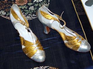 | The geranium still lives but is not as lush as it used to be. Above, fancy shoes from long ago. Both photos by Rick Webb. |