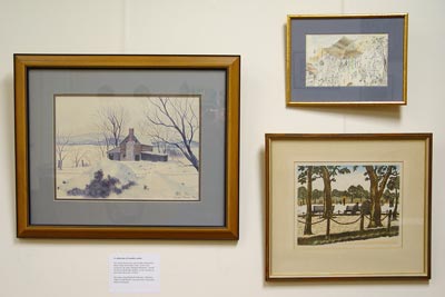 Following are photos taken at Mary Heaths Memorial Service in Monterey, VA, 10 August 2003, and at the exhibit of her art work, dishes, and many other things that was in the Mountainview Room of the Highland County Library for a month and a half thereafter. The program handed out at this service can be downloaded here. [173 kB] Unattributed photos are by the author.
